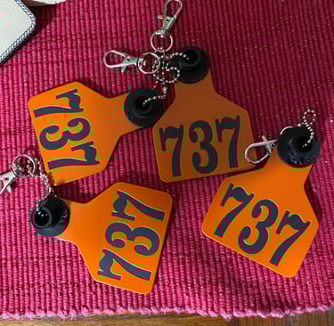 At jbcowtags.com, we create personalized Ritchey ear tags for cattle and custom tags for your keychains, bags, and events.